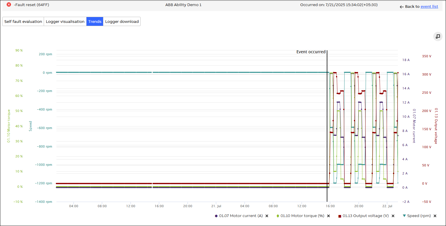 if a signal exceeds the custom limit for drive or rotating equipment. E.g. Asset limit reached, Back to normal operation,